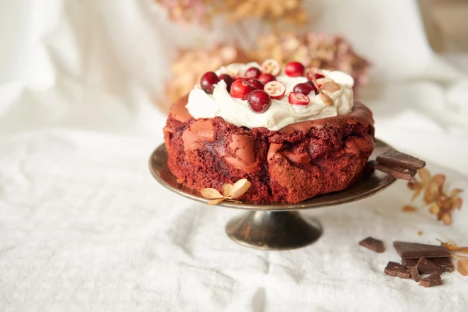 Шоколадный торт «Красный бархат» с греческим йогуртом (без муки)