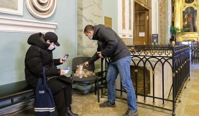 По словам главного научного сотрудника Музея истории Санкт-Петербурга Марины Логуновой, новая хранительница Серафима еще проходит период адаптации в соборе, но уже выбрала себе уголом для сна - и какое! Обитое красным бархатом “царское место” - помост для богослужения, где стоял император.
