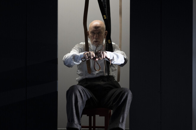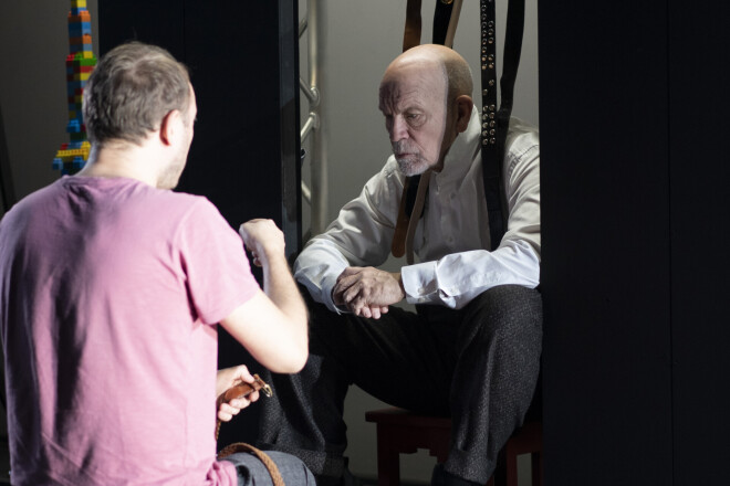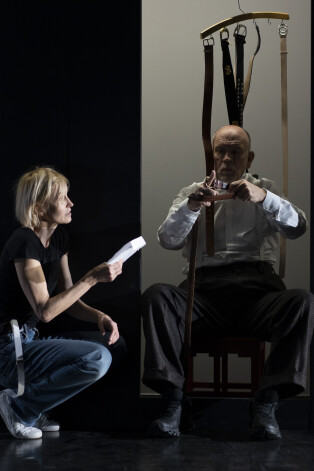 Тимофей Кулябин: “В этом спектакле двое актеров, но только один персонаж. Большую часть времени мы проводим в подсознании, в кошмарных видениях героя, которого мы так и не увидим. Вместо него на сцене есть две противостоящие друг другу фигуры – они ведут напряженный, яростный и сложный диалог. Это диалог человека со своими собственными тайными желаниями и страхами. С тем, что он не решается сказать даже самому себе – и с тем, от чего он не может избавиться, не лишив себя при этом жизни”.