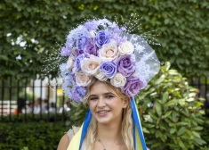 Главные тренды этого года - гиперобъем, яркие цвета и тяга к сюрреализму. Некоторые дамы решили при помощи своих головных уборов выразить поддержку Украине - их шляпки напоминали украинские цветочные венки.