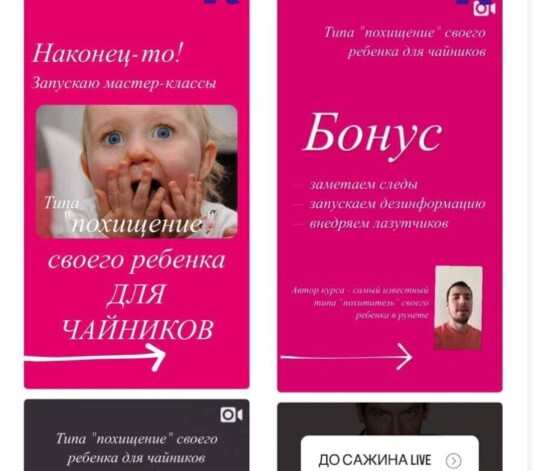В интернете появились курсы для мужчин по похищению собственных детей. Портал Readovka, утверждает, что коуч — российский предприниматель Станислав Сажин, который выкрал 5-летнюю дочь у бывшей супруги. С момента похищения прошло уже больше трех месяцев, и бизнесмена до сих пор не могут найти.