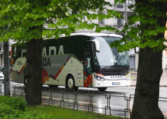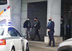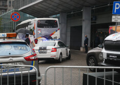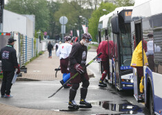 В среду утром игроки латвийской хоккейной сборной сели в специально выделенные автобусы Rīgas satiksme, а затем в сопровождении Государственной полиции от Arēna Rīga (Арена Рига) отправились на тренировку в ледовый холл стадиона Daugava.