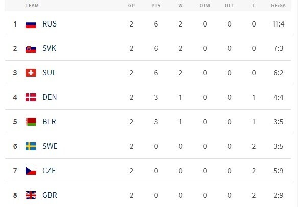 В двух других матчах этой группы обошлось без сенсаций, хотя Словакия намучилась в поединке против Великобритании, выиграв с преимуществом всего лишь в одну шайбу – 2:1. Вратарь британцев Бен Баунс сделал 41 сэйв и стел главным героем встречи.
