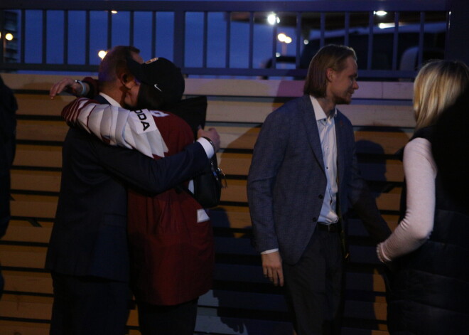 Во вторник сборная Латвии по хоккею не смогла обеспечить себе место в четвертьфинале чемпионата мира по хоккею, который проходит в Риге. Однако, несмотря на проигрыш, после игры болельщики встретились с нашими хоккеистами и поблагодарили за игру, наблюдал Jauns.lv на Арене Rīga.
