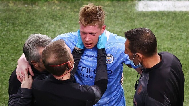 В матче с «Челси» бельгийца заменили после жесткого столкновения с Рюдигером. Де Брейне уходил в слезах и с гематомой под глазом.