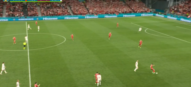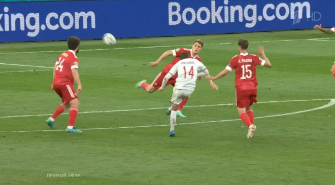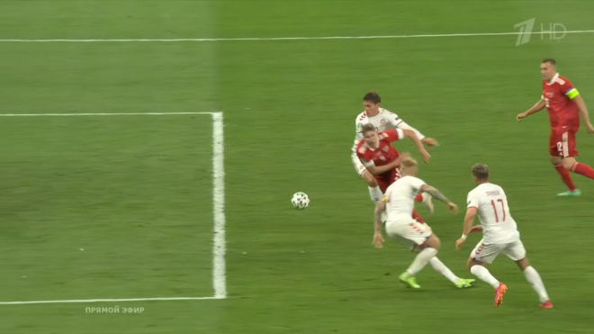 - Так же бомбически, как Дания начала игру против Бельгии в прошлом туре, стартовать в этот раз не получилось. Россия играла без мяча и регулярно опускалась полным составом на свою половину, поджимая соперника только ситуативно, но контроль не приближал Данию к возможности выйти на возможность пробить — или хоть сколько-нибудь акцентированно завершить атаку. В отличие от сборной России, за первые полчаса соперник не нанес ни одного удара в створ Матвея Сафонова.
