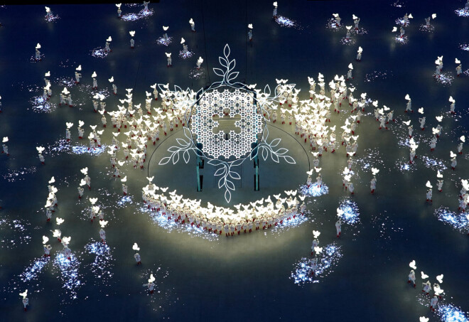 Латвийская делегация прибыла на Пекинский национальный стадион 43-й по счету. Флаг Латвии пронесли саночница Элиза Тирума и хоккеист Лаурис Дарзиньш.