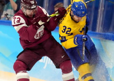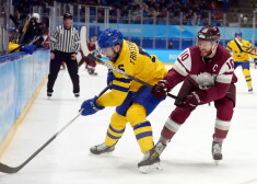 Латвийская сборная по хоккею соревнуется со Швецией на Олимпиаде в Пекине