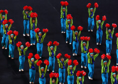 Церемония закрытия началась с артистических выступлений, затем на стадион вышли знаменосцы, флаг Латвии нес спортсмен Матисс Микнис. Вслед за знаменосцами на стадион вышли и другие спортсмены, еще не покинувшие Пекин.