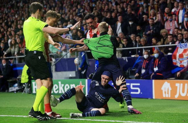 В итоге главные страсти разгорелись в самом конце второго тайма, сообщает Sport24. Защитник «матрасников» Фелипе грубо сбил Фила Фодена на левой бровке, и англичанин, корчась от боли, перекатился через боковую линию обратно в поле. Увидев это, ранее уже конфликтовавший с Фоденом Стефан Савич схватил англичанина за шиворот и выволок обратно за кромку.
