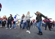 Хоккейные болельщики маршируют от памятника Свободы к "Арене Рига" (май 2023)