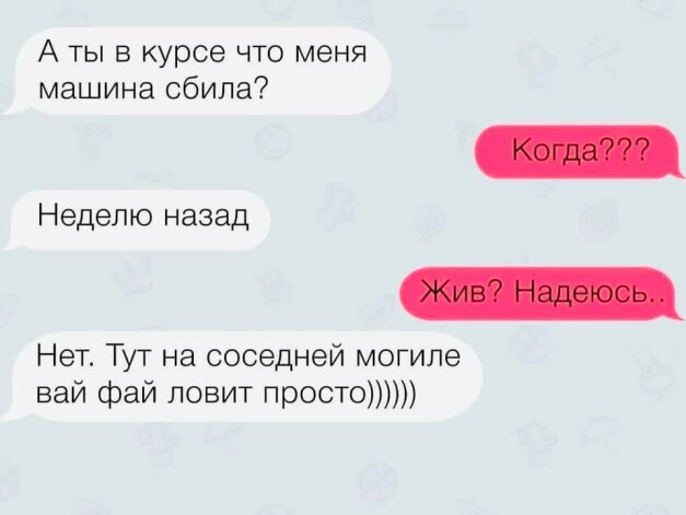 — Дорогая, не поверишь, Степаныч чихнул, так мы у него в гараже на карантине были.