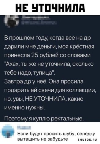 — Ну, я не смотрю сериалы, не курю вейп, не набиваю татухи, не выкладываю свои фотки в сеть…
