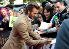 Дэвид Бекхэм с сыном Бруклином на премьере фильма «Меч короля Артура» в Лондоне