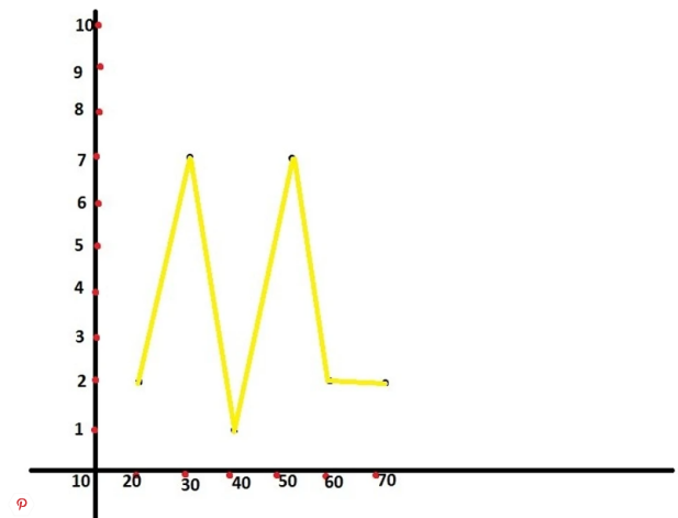 Чтобы построить график жизни на основе этих цифр, нужно нарисовать две оси координат на бумаге. На вертикальной должно быть 10 делений, от 1 до 10 по нарастающей. На горизонтальной — 6 делений, означающих десятилетия жизни. Отсчет лет начинается с 10 в точке пересечения осей, и каждое деление прибавляет по 10 лет. И так до 70.