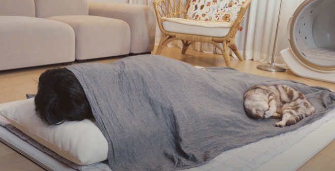 Мужчина притворился, что спит в комнате на матрасе, накрывшись одеялом. Коты в это время находились рядом с ним. Через некоторое время животных позвали на обед. Пока котов не было в комнате, их хозяин положил на свое место огромную тряпичную куклу, надел на нее парик, накрыл одеялом, а сам ушел. Когда питомцы вернулись, они не сазу заметили "замену". Сытые животные по привычке расположились на своих обычных местах, даже не обратив внимания на то, что лежат рядом с куклой, а не хозяином, пишет belta.by.