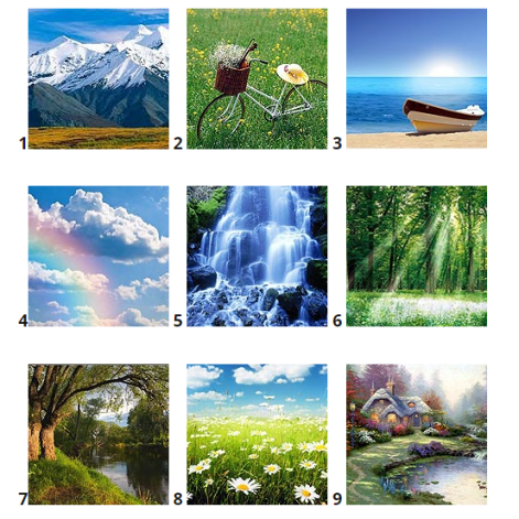 Посмотрите на представленные картинки. Выберите тот рисунок пейзажа, который заставляет вас улыбнуться, погрузиться в мечтания или оказаться внутри нее.