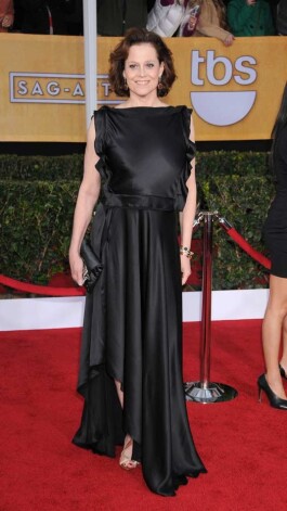 Модные критики были удивлены небрежному виды актрисы Сигурни Уивер на красной дорожке церемонии вручения премий Гильдии киноактеров США. Многие обратили внимание, что черное платье Lanvin лежит на ней как-то странно, теперь же стало понятно, что актриса просто надела его задом наперед. И вряд ли это стало результатом простой забывчивости.