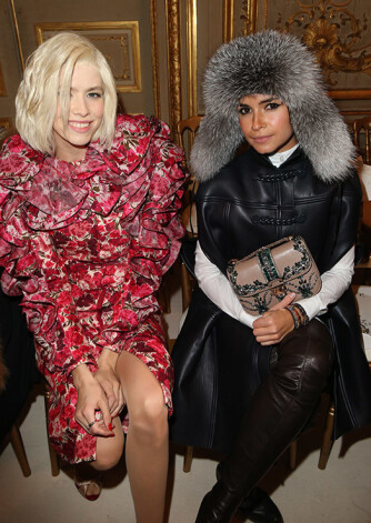Две подруги-модницы на Неделе моды в Париже выглядели как из разных опер — летняя Елена в цветочном принте и зимняя Мирослава, не снявшая подчеркивающую ее русское происхождение ушанку даже во время показа. Мода требует жертв!