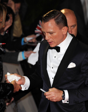 В перерывах между позированиям фотографам на Королевской премьере, которая проходила в знаменитом Альберт-холле в Лондоне, актер, одетый в костюм Tom Ford, подходил к своей ассистентке, чтобы вытереть пот со лба и высморкаться. Супруга Крейга актриса Рейчел Вайс также заботливо вытирала лоб своего мужа, когда они уже зашли внутрь. Тем не менее Крейг, который уже сыграл Бонда в фильмах «Казино «Рояль» в 2006-м и «Кванте милосердия» в 2008-м, мужественно выдержал жар софитов и многочисленные фотовспышки. «Прием публики был невероятным, — сказал актер, — это моя третья премьера «Бонда» и она — самая большая и лучшая из них». На премьере, которую почтили своим присутствием принц Чарльз и его супруга, герцогиня Корнуэльская Камилла, также была замечена испанская актриса Пенелопа Крус, которая пришла поддержать своего мужа Хавьера Бардема, исполнившего роль главного злодея, однако на красную дорожку Пенелопа так и не вышла, так же как и супруга Крейга Рейчел Вайс.