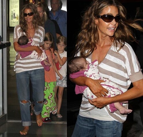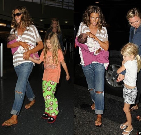 Актриса Дениз Ричардс (40) вместе со своими тремя дочерьми отправилась в Нью-Йорк на презентацию своей автобиографии. Маленькая Элоиза вела себя просто прекрасно, она спокойно лежала на руках своей мамы, которая передвигалась по аэропорту в сопровождении двух дочерей от брака с Чарли Шином — 7-летней Сэм и 6-летней Лолы. Дениз выглядела немного усталой, но 6-часовой перелет с двумя маленькими девочками и крошечным ребенком и не мог быть легким.
