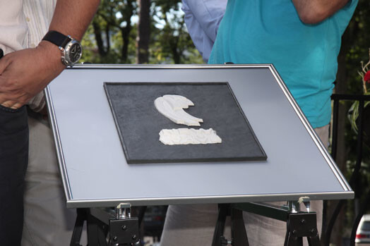 Торжественная церемония разрезания ленты при участии сопредседателей жюри конкурса. Установка скульптурного барельефа «Новая волна». Улица Турайдес, площадка около набережной.
