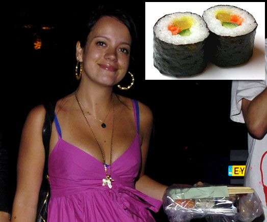 Британская певица Лили Аллен (25) не худышка от природы, поэтому она тщательно следит за своим весом. Ее самое главное открытие ― суши, их она может есть сколько душе угодно, так как рис и сырая рыба большого вреда фигуре не наносят. Лили часто выходит из суши-баров с порцией суши на вынос, чтобы наслаждаться любимым блюдом и дома.
