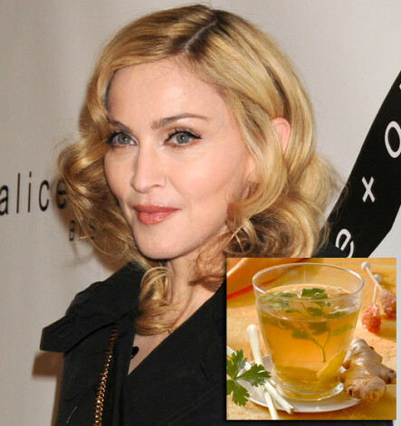 Королева поп-музыки Мадонна признается, что в свои 52 года находится в лучшей форме, чем 20 лет назад. Один из секретов ее бодрости и стройности ― имбирный чай. Этот напиток заряжает энергией и способствует выводу из организма токсинов. Он продается во всех специализированных чайных магазинах, и его можно найти даже в одноразовых пакетиках, которые удобно носить с собой. Говорят, у Мадонны всегда есть несколько в сумке.