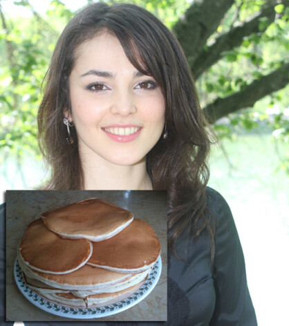 Бывшая солистка группы «Фабрика», а нынче сольная исполнительница Сати Казанова (28), если у нее выдается выходной, часто балует себя домашними оладушками собственного приготовления, рецептом которых поделилась с читателями своего твиттера: «По многочисленным просьбам пишу рецепт оладушек: одно яйцо, 0,5 л кефира, 1 ч.л. соли, 1 ч.л. соды, 3-4 ст.л. сахара, чуть ванили, 1-2 ст.л. сметаны, муки 10-12 ст.л. ложек с горкой, все взбить (лучше миксером) и жарить на сковороде, лишь в самом начале смазав ее сливочным маслом».