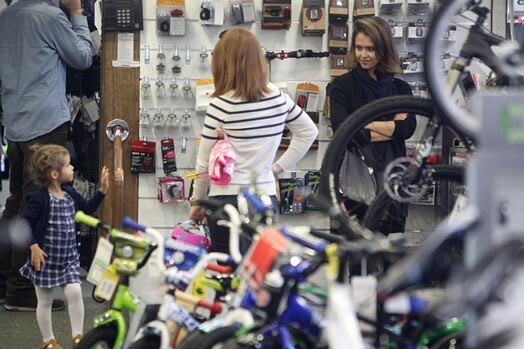 Джессика Альба посчитала, что ее 2-летняя дочка Онор уже достаточно большая и ее пора приобщить к велосипедному спорту. Девушки отправились на шопинг в один из магазин Санта-Моники, где провели много времени за выбором подходящего велосипеда. Онор подошла к покупке серьезно — она попробовала покататься на нескольких моделях, пока не сделал свой выбор. Кроме того, по настоянию мамы в придачу к велосипеду Онор получила и красивый розовый шлем. Девочке он так понравился, что она не стала его снимать и после того, как они ушли из магазина.