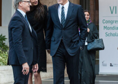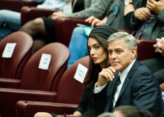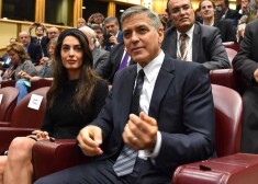 Чета Клуни, а также актер Ричард Гир и французский миллиардер Франсуа-Анри Пино с супругой актрисой Сальмой Хайек и дочерью Валентиной были приглашены в Ватикан, где состоялась конференция по проблеме беженцев, устроителем которой выступил папа римский Франциск. Для встречи с понтификом отличающаяся безупречным вкусом миссис Клуни выбрала кружевное черное платье Atelier Versace в сочетании с бежевыми туфлями. На голове у нее был черный тюрбан. После официальной части мистер и миссис Клуни смогли лично пожать руку папе римскому, который удостоил актера медали за участие в благотворительной деятельности основанного Франциском фонда Scholas Occurrentes. Эта организация занимается продвижением идей социальной интеграции и мира между представителями разных культур.