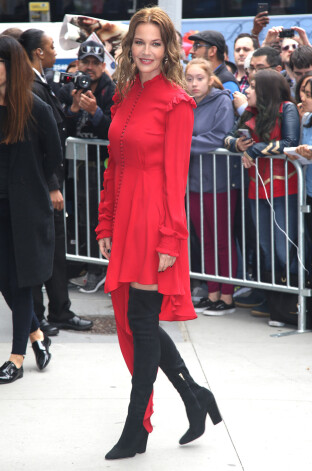Конни, которая в одном из опросов американского журнала Entertainment Weekly в 2000-м году была названа «секс-символом», недавно снялась в масштабной экранизации комиксов «Чудо-женщина», где ей досталась роль царицы Ипполиты. Сейчас команда картины занята ее продвижением, в рамках которого актеры появляются в эфирах различных телешоу и общаются с поклонниками. На одну из таких встреч Конни пришла в красном платье Magda Butrym с асимметричным подолом стоимостью 1589 евро.