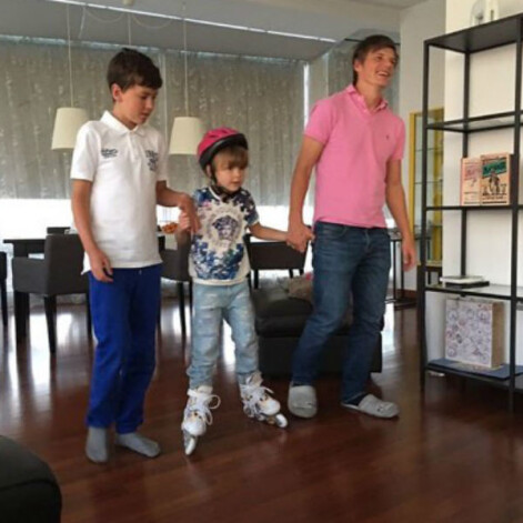 На одной из фотографий Андрей запечатлен с дочерью и сыном Алисы, которых учит кататься на роликовых коньках прямо в доме. «Весело живем», - подписала забавное фото Алиса.