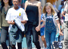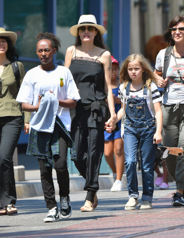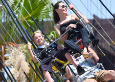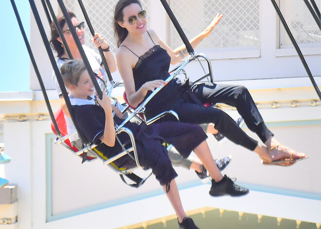 От жаркого калифорнийского солнца ее защищала соломенная шляпа. Вместе с матерью и старшими братом и сестрами, 12-летней Шайло, 11-летней Захарой и 13-летним Паксом, близнецы весело провели время, катаясь на атракционах. С лица актрисы, находящейся в стадии развода с Брэдом Питтом, не сходила счастливая улыбка, похоже, она, наконец, смогла отвлечься от грустных мыслей.