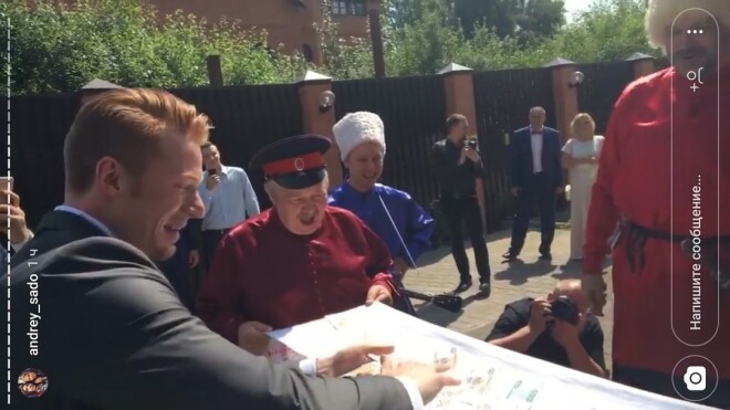 Днем в сети появились первые фото и видео с начала торжества. Чтобы увидеть невесту, Никите пришлось осыпать казаков хрустящими купюрами. После этого жених смог пройти в отель, чтобы увидеть Алену. Там состоялась выездная регистрация.