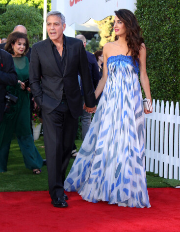 На светское мероприятие Джордж прибыл не только с женой, но и с тещей. Бария Аламуддин не отстала от своей дочери и тоже подобрала роскошный наряд – изумрудное платье свободного кроя с декором из перьев. Амаль же появилась в бело-голубом платье-бюстье в пол.