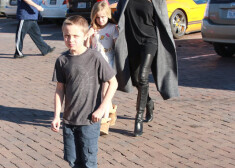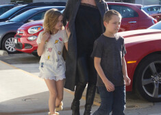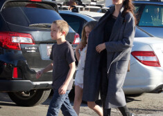 Анджелина Джоли на прогулке с 8-летними близнецами Ноксом и Вивьен