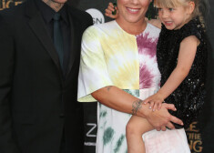 Певица Пинк с мужем и дочерью на премьере