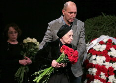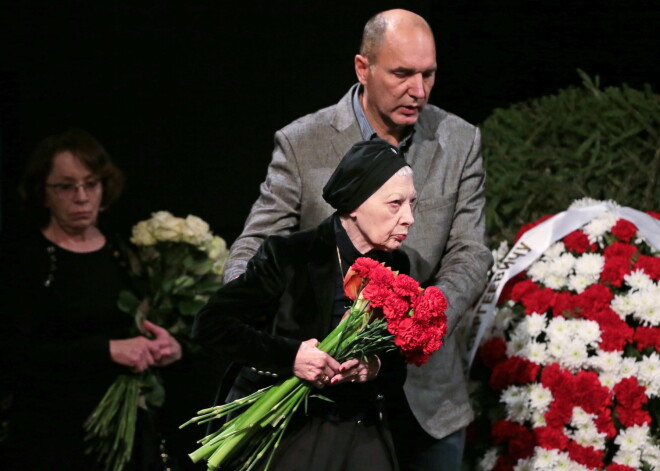 Прощание с народным артистом СССР Леонидом Броневым прошло в театре "Ленком" в Москве в понедельник, отдать дань памяти и уважения актеру пришли сотни людей.