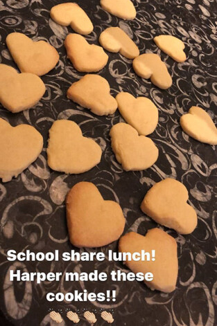 Так, на днях, счастливая мама разместила на своей странице в Instagram Кадр, на котором Харпер запечатлена со своим папой, а также снимок печенек, которые дочь испекла сама.