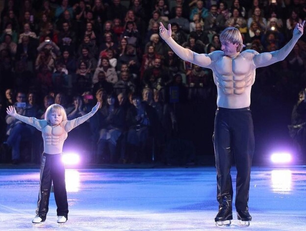 А недавно Плющенко-младший вместе с отцом отправился на свои первые гастроли. В каждом городе Александр и Евгений в специальных костюмах исполняли номер «Sex Bomb», который когда-то прославил фигуриста на весь мир. «Саня — большой молодец! — рассказывал Евгений. — Утром гуляет и играет, днем тренируется, вечером накатывает программу и выступает в шоу!»
