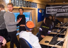 Принц Гарри и Меган Маркл во время интервью на радиостанции в Брикстоне