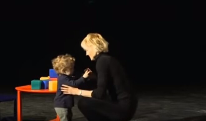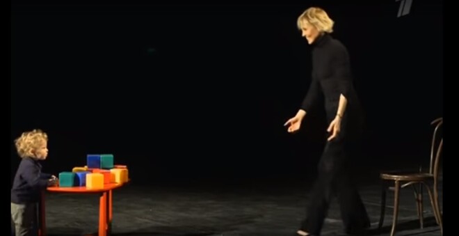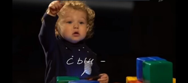 Без лишних слов продюсеры представили мальчика: сын — Алекс. Дапкунайте подозвала его к себе, взяла на руки и ушла со сцены. Кудрявому Алексу чуть больше года и он очень похож на свою знаменитую маму.