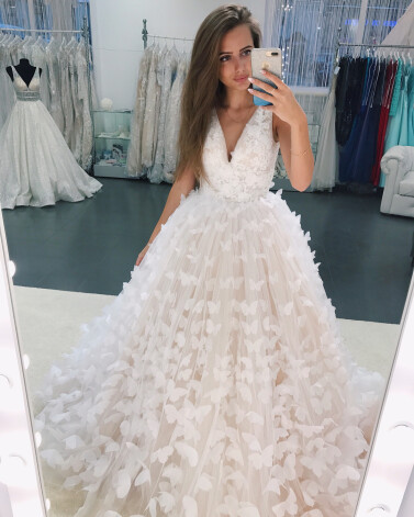 В свою очередь, избранница популярного видеоблогера опубликовала несколько кадров в свадебном платье, попросив фолловеров выбрать, какой наряд ее идет больше.
