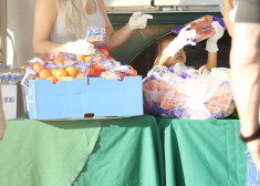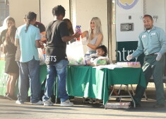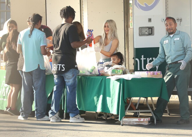 Ким Кардашьян с дочерью Норт раздает еду нуждающимся