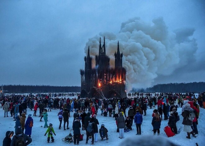 В России на Масленицу сожгли 30-метровый деревянный костел