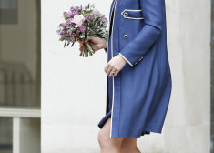 Для появления на мероприятии она выбрала ансамбль синего цвета - платье и пальто одной из своих самых любимых британских марок Jenny Packham. На ногах у нее были туфли Jimmy Choo на высоком каблуке.