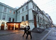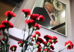Москвичи несут цветы к портрету Табакова в МХТ имени Чехова