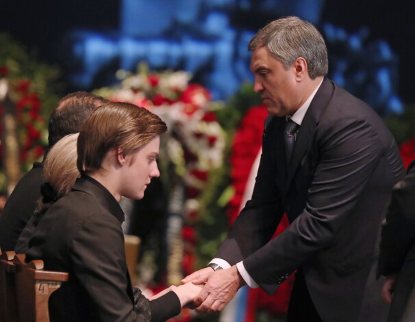 Так, во МХТ имени Чехова, на сцене которого установлен гроб с телом покойного, прибыли, в частности, председатель Госдумы Вячеслав Володин, актер Михаил Боярский, артист цирка Эдгард Запашный, актер Игорь Верник, президент Федерации хоккея России Владислав Третьяк.