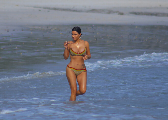 Ким Кардашьян на пляже в Мексике